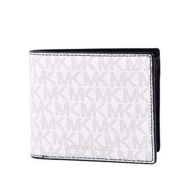 MICHAEL KORS 男款 緹花LOGO防刮八卡短夾/附證件夾-白色