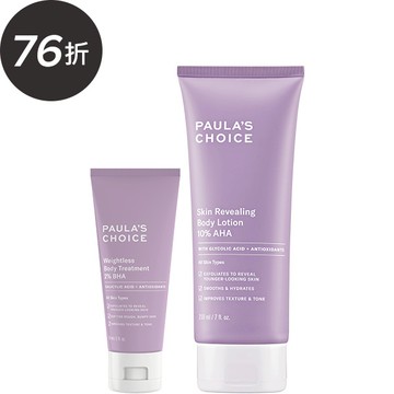 10%果酸身體乳,含有10%果酸配方,去除身體粗糙老廢角質,有助肌膚抗老化,改善因陽光造成的膚色不均、暗沉與乾燥,絲滑乳液質地,可柔軟滑嫩肌膚,並富含抗氧化物、維他命C與E和多重保濕因子,賦予肌膚彈潤保水力。2%水楊酸身體乳,為絲滑柔光水乳液,含2%水楊酸成分,去除老廢角質,改善手腳毛孔角質化等粗糙顆粒丘疹、解決色差問題,並添加多種抗氧化物及保濕因子,滋潤乾燥膚況,提升皮膚光澤明亮度。