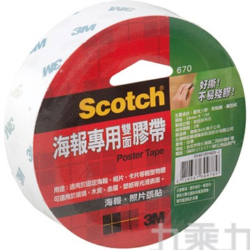 3M 670海報專用雙面膠帶(18mm) 06250-3358
