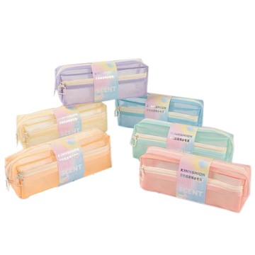 夕嵐方形雙層網紗筆袋 (顏色隨機出貨)