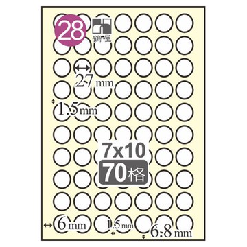 Herwood 鶴屋牌 70格 φ 27mm NO.B27W A4雷射噴墨影印自黏標籤貼紙/電腦標籤 105大張入