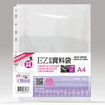 - \t\t產品名稱:A4-EZ防滑資料袋(11孔100張) 透明邊條