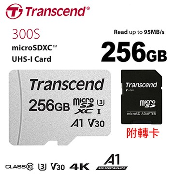 創見Transcend記憶卡/256G/microSDXC10 A1/300S-A