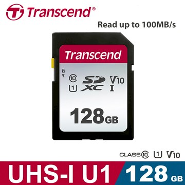 Transcend 創見 UHS-I SD 300S 記憶卡 128GB 讀取速度高達 95MB/s 適用於4K Ultra HD高清畫質錄影 1個