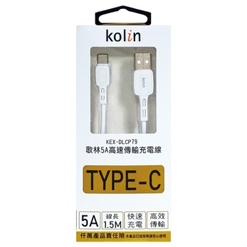 Kolin 歌林 6A 超級快充傳輸線 2m 白色 1條