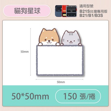 B1/B21S標籤機專用防水貼紙50*50mm-貓狗星球 E43
