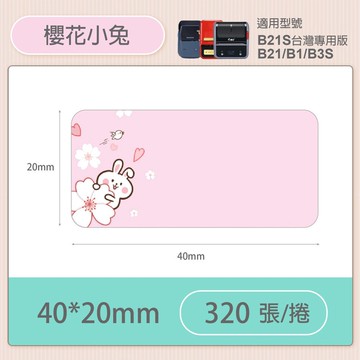 B1/B21S標籤機專用防水貼紙40*20mm-櫻花小兔 E39