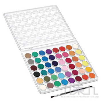 - \t\t\t48色粉餅水彩 + 水彩筆乙支入塑膠盒(筆毛沾膠束尖,套筆套) \t\t