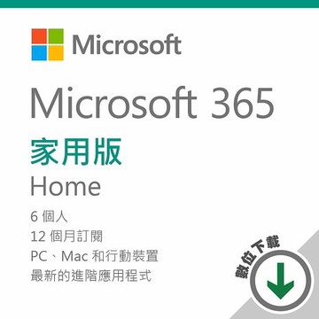 Microsoft 365 家用版一年訂閱 - ESD 數位下載版