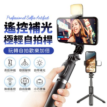 廠家批發Q02S藍牙自拍桿 補光燈自拍桿加長款手機通用直播支架