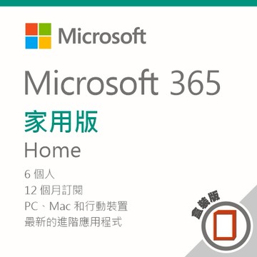 Microsoft 365 家用版一年訂閱 - ESD 數位下載版