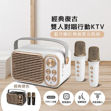點我下載aibo 經典復古 雙人對唱行動KTV 藍牙喇叭無線麥克風組經典灰