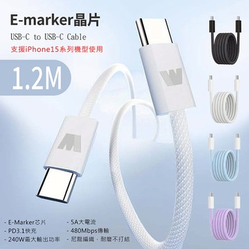 Wephone 雙頭Type-C E-marker晶片 240W PD快充線/傳輸線/尼龍編織線(120公分)白色