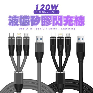 【99.9%快充】三合一120W鋅合金 液態矽膠充電線1.2M