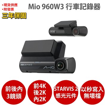 【Mio】 960W3 前4K後2K內2K 多視角同步掌握 三鏡頭行車記錄器+附32G+三年保固 安裝費另計