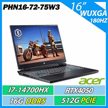 點我下載ACER PHN16-72-75W3 (i7-14700HX/16G DDR5/RTX4050/512G PCIe/WIN11/WUXGA 180HZ/16吋)電競筆電