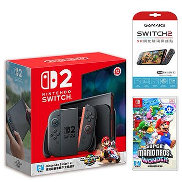 【Nintendo 任天堂】Switch 2 (NS2)瑪利歐賽車世界遊戲主機(台灣公司貨)+9H鋼化膜