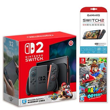任天堂 Switch2 瑪利歐賽車世界 主機組+NS 超級瑪利歐 奧德賽+《9H鋼化貼》