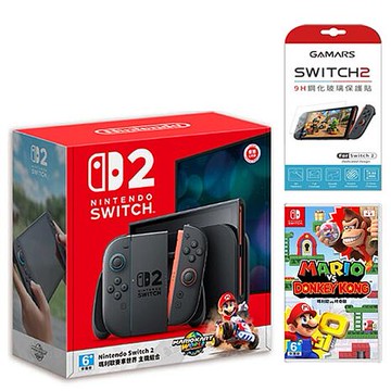 【Nintendo 任天堂】Switch 2 (NS2)瑪利歐賽車世界遊戲主機(台灣公司貨)+9H鋼化膜