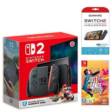 【Nintendo 任天堂】Switch 2 (NS2)瑪利歐賽車世界遊戲主機(台灣公司貨)+9H鋼化膜