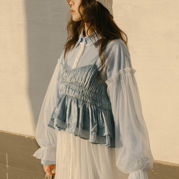 緹花微透膚綁帶兩件式罩衫上衣 兩色售