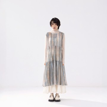 素面/碎花圖案透明感糖果袖開襟罩衫(01000715200) - earth music&ecology