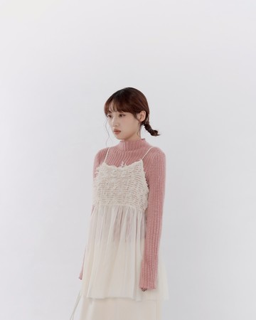【NaSuBi Vintage】荷葉綴飾針織古著罩衫