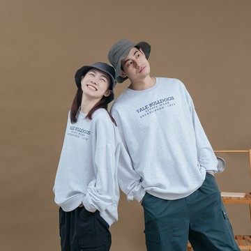 【AT】CALIFORNIA毛巾繡大學T 繡棉 長袖上衣 立體毛圈 寬鬆 潮流百搭 男女可穿 情侶 灰/咖 80687