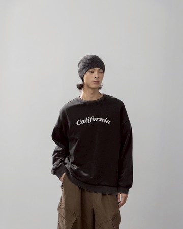 男裝 California洗水設計長袖衛衣-黑M/L/XL