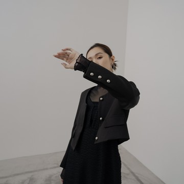 質感金屬釦造型無領短版西裝外套-黑 M/L