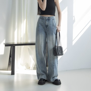 A|復古風線條刷色水洗牛仔寬褲(兩色)