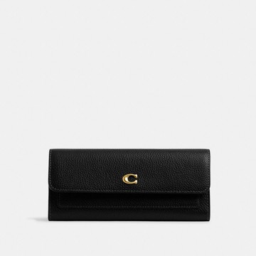 Calvin Klein 立體LOGO 質感皮革多卡女長夾-氣質黑