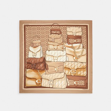 STACKED TABBY BAGS PRINT SILK SQUARE SCARF-OLIVE MULTI