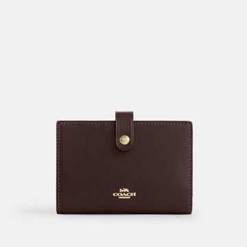 COACH 金屬馬車荔枝紋皮革方型卡夾鍊帶零錢包(深褐)