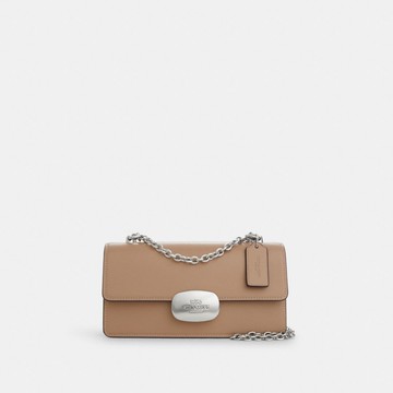 COACH 馬車皮革拼PVC鍊帶斜背二用包(卡其柑橘)