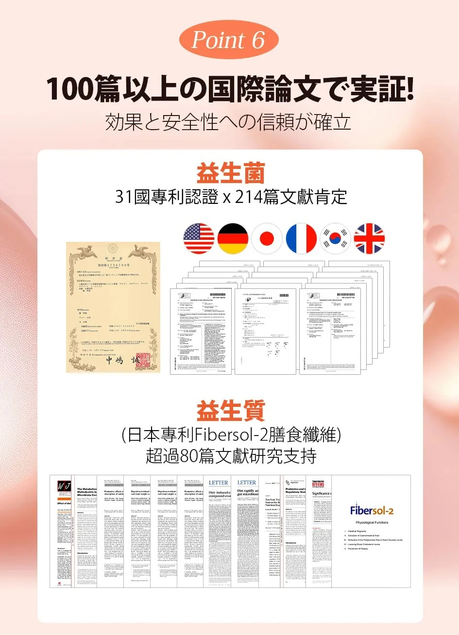 | 主成分 | 專利6效益生菌 日本快樂益生菌 益生質(半乳寡糖、膳食纖維) | 專利複合式益生菌 LT12益生菌 益生質、益生肽 | 專利膳食纖維 菊苣纖維 牛乳蛋白胜肽 |