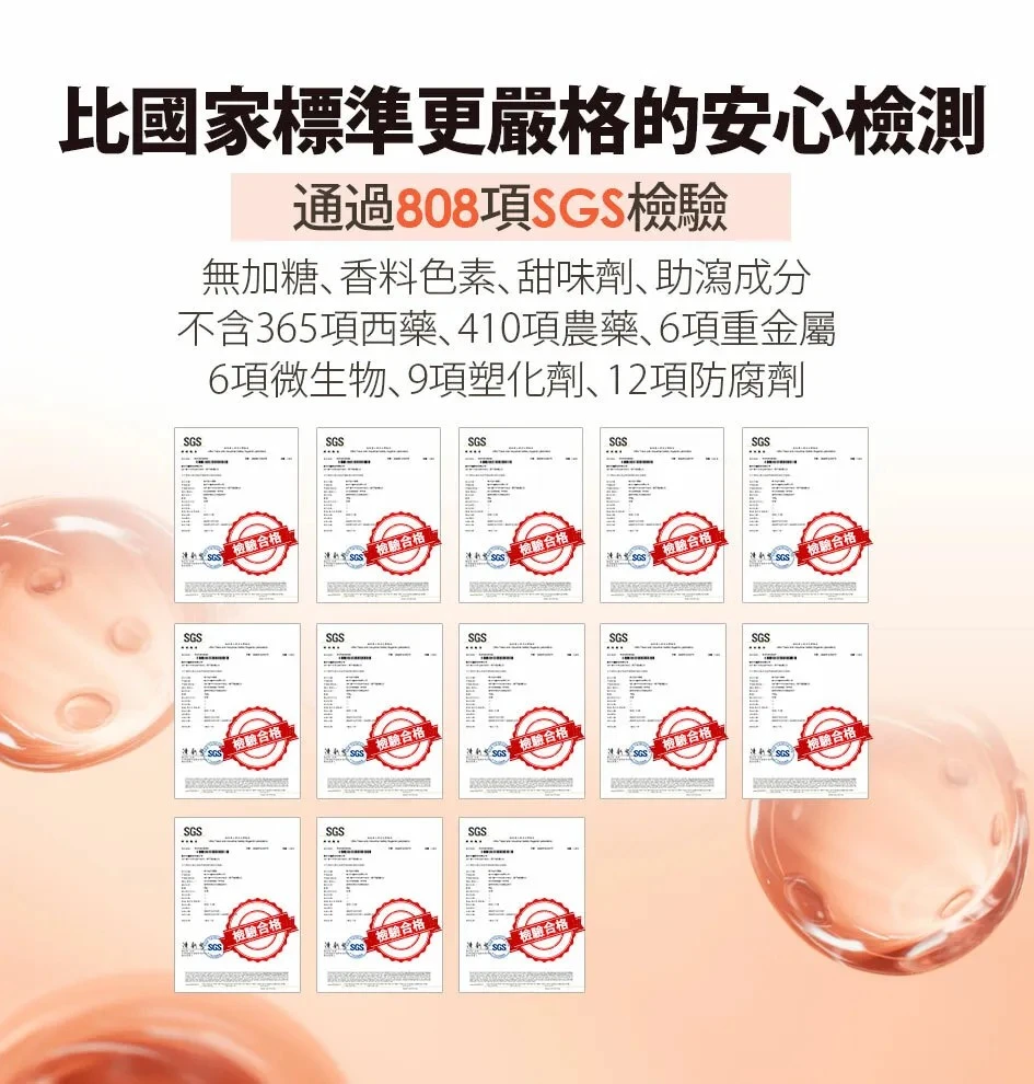 配方不添加蔗糖、人工甜味劑、香料、色素,經 SGS 808 項檢驗合格,特別適合兒童、孕媽咪、長輩與需要控糖的族群食用。
