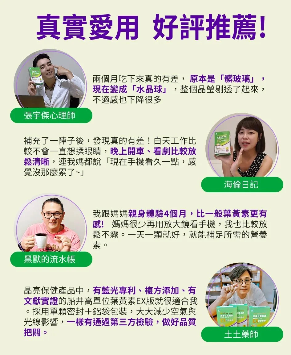 船井高單位葉黃素EX需要食用多久才會有效?人體無法自行合成葉黃素,需從食物或保健食品中補充,其保健效益並非立即性,唯有「定時、定量、持續性」補充,才能達到長期保養效果。