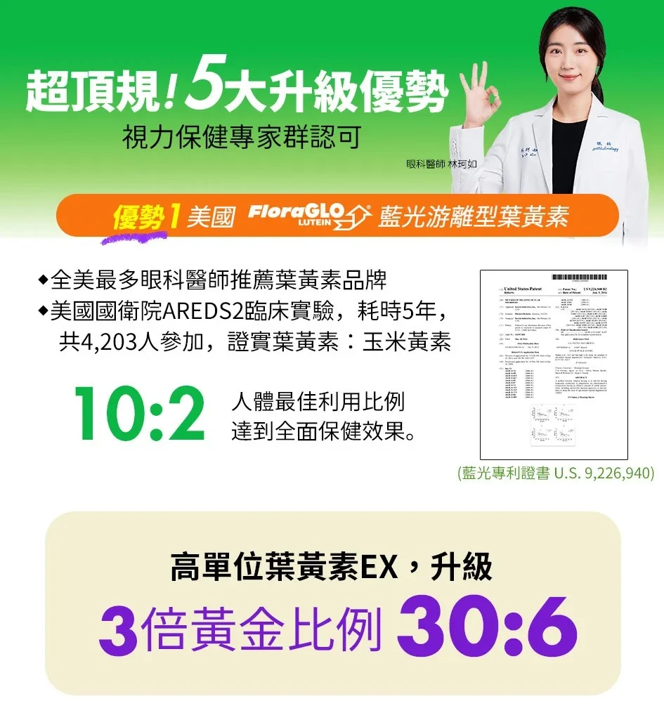 衛福部規範‧最高足量30mg!美國國衛院研究指定!葉黃素18倍吸收率