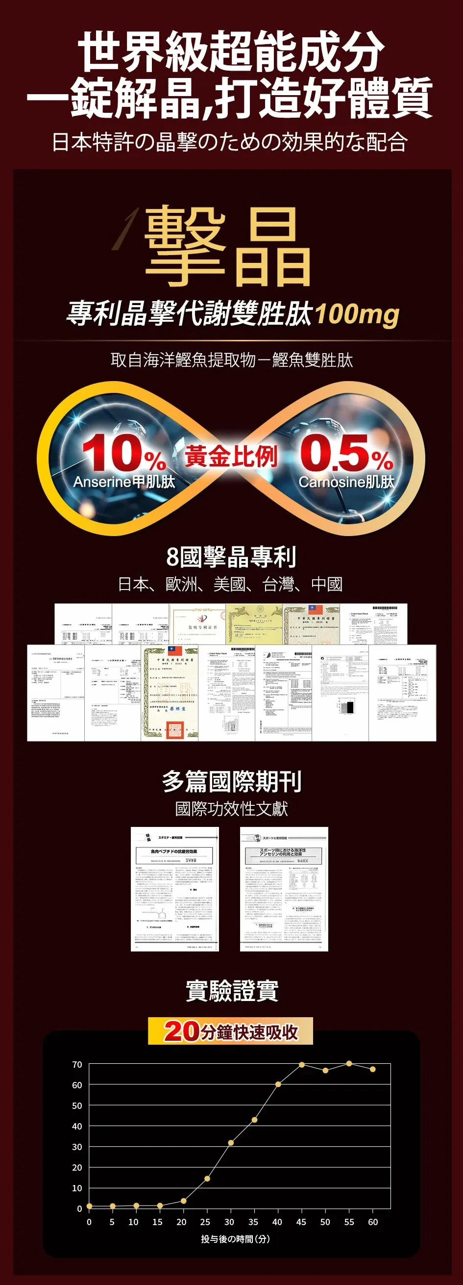 船井晶擊對策EX,主成分-專利晶擊代謝雙胜肽,為魚肉萃取來源,含有動物性成份,故本產品非素食食品。