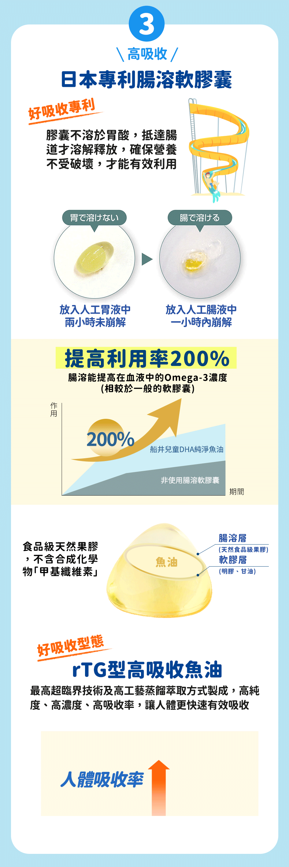 3.『船井兒童DHA純淨魚油』搭配『船井益生菌口嚼錠』,建議間隔30分鐘以上,以達到最佳的吸收度。