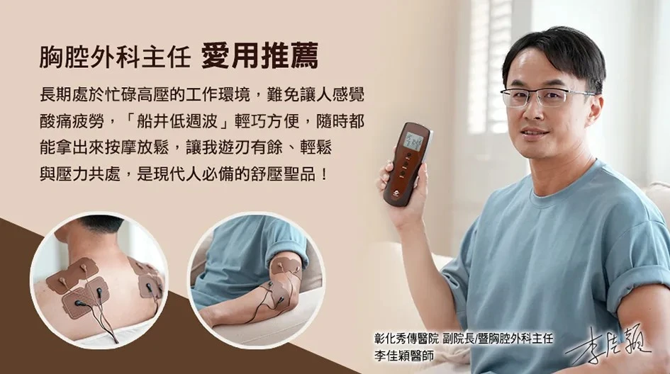 Q:低週波的原理?A:低週波是一種頻率約在1Hz~1000Hz之間的微電流刺激,透過電極貼片傳遞至皮膚表層,進一步刺激肌肉收縮與放鬆,常用於協助肌肉放鬆、促進局部循環與模擬按摩感受。不同頻率與節奏的變化,可產生揉捏、敲擊等不同的刺激效果。