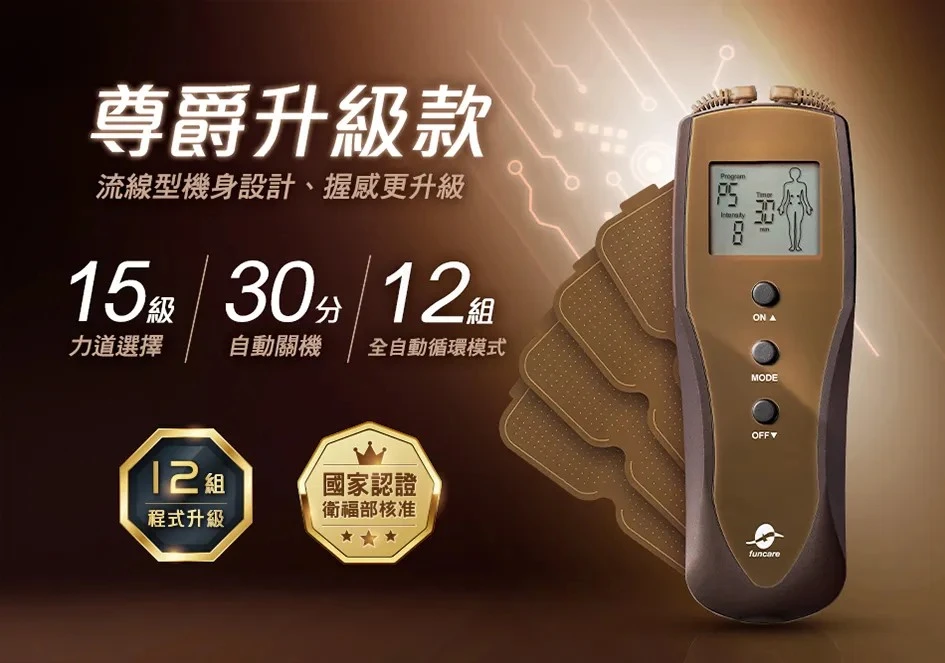Q:12程式有哪些模式可以選擇?A:內建12種專業模式,包含敲擊、揉捏、推拿、拍打等不同節奏與強度,可依不同身體部位與個人偏好切換使用。