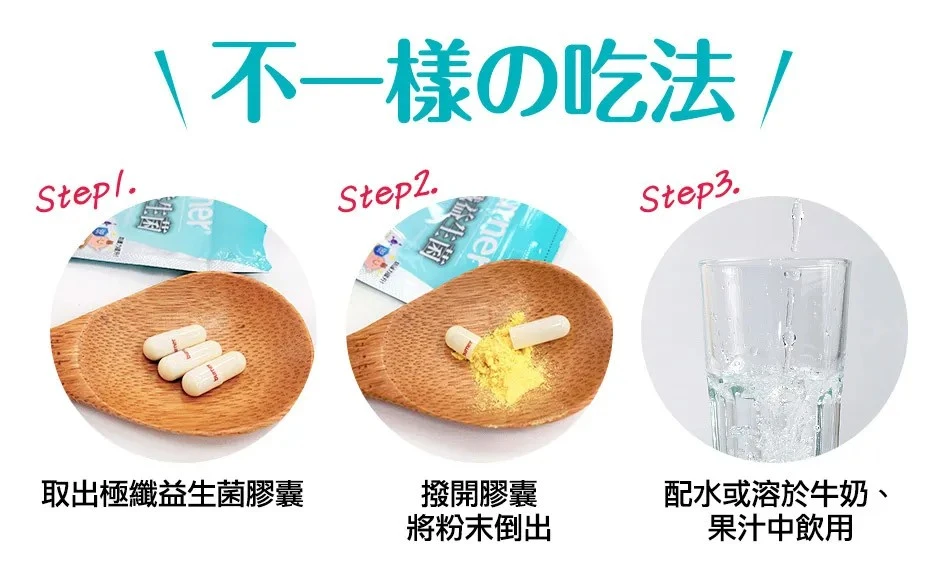 A:極纖益生菌透過循序漸進的方式調整體質,雖非藥物有立竿見影的效果,但可帶來身體健康和體態控制效果且不會有依賴性,讓腸道中的好菌為優勢菌種是打造健康體質的關鍵。