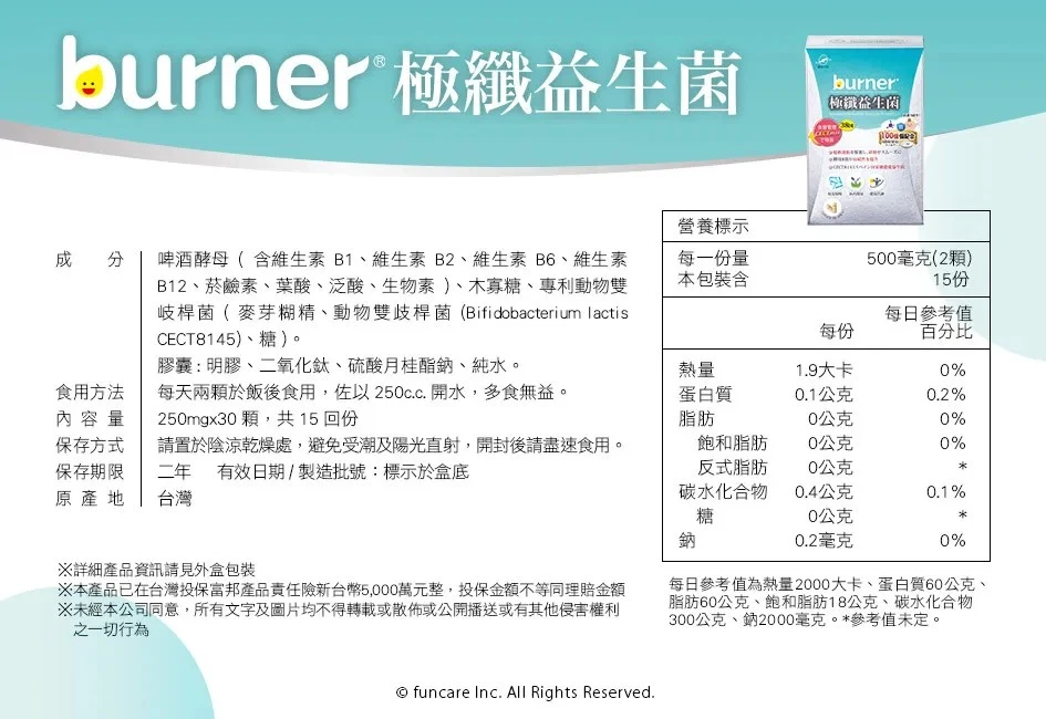 船井 burner倍熱 極纖益生菌30顆/盒x2_孕哺乳可食