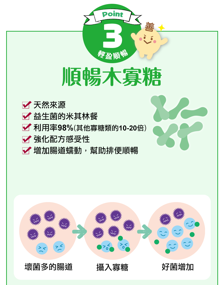 A:初期會有排便次數變多及糞便變軟為正常現象,若有明顯不適建議先減量或減少食用天數。