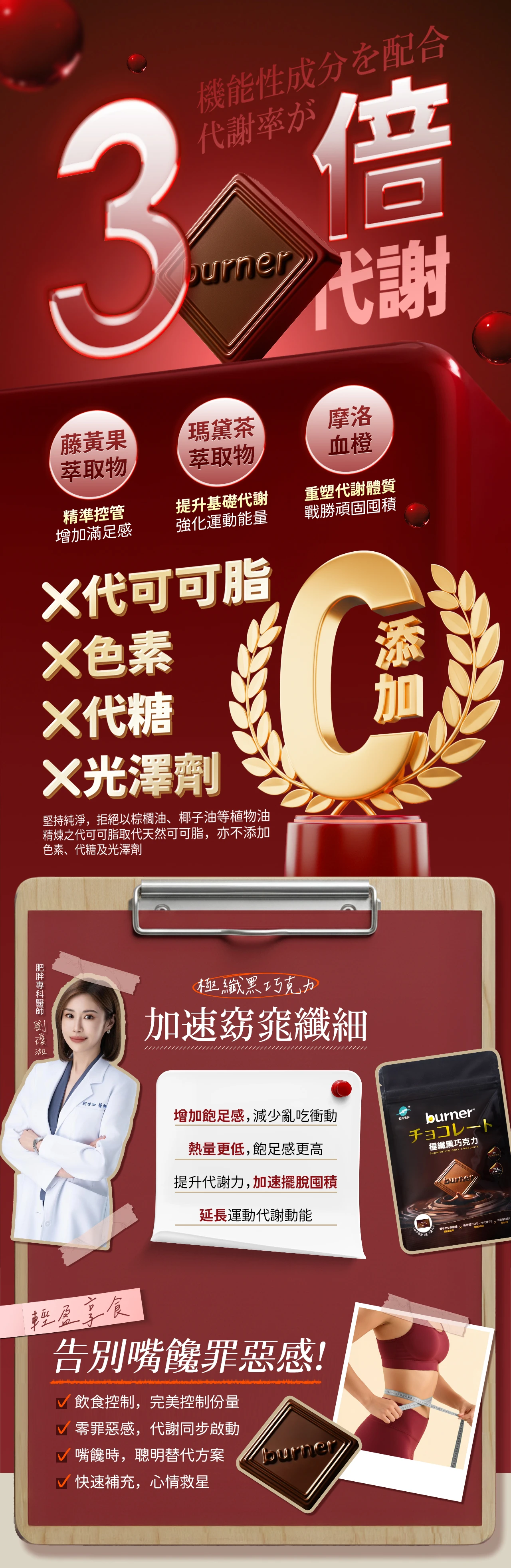 ??想提升代謝、控制體態(適合白天/運動前):推薦 【72%極纖黑巧克力】。利用藤黃果與瑪黛茶加強熱量消耗,適合餐前或下午嘴饞時阻斷吸收。