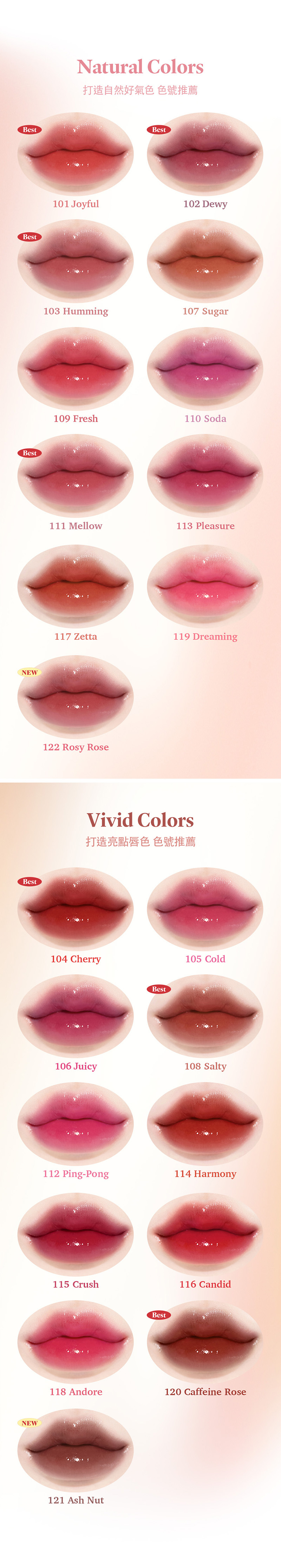 1028 唇唇欲凍持色水光唇釉 (六色任選)