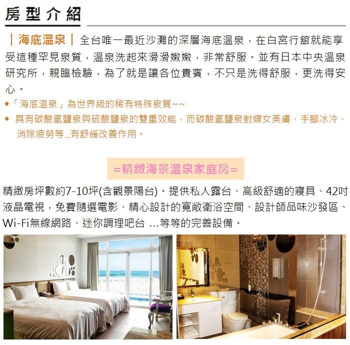 (萬里)白宮行館沙灘溫泉度假村-平日精緻海景溫泉家庭房住宿券