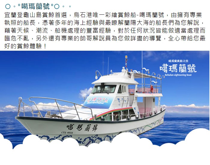 (宜蘭)噶瑪蘭號 賞鯨+環龜山島成人票